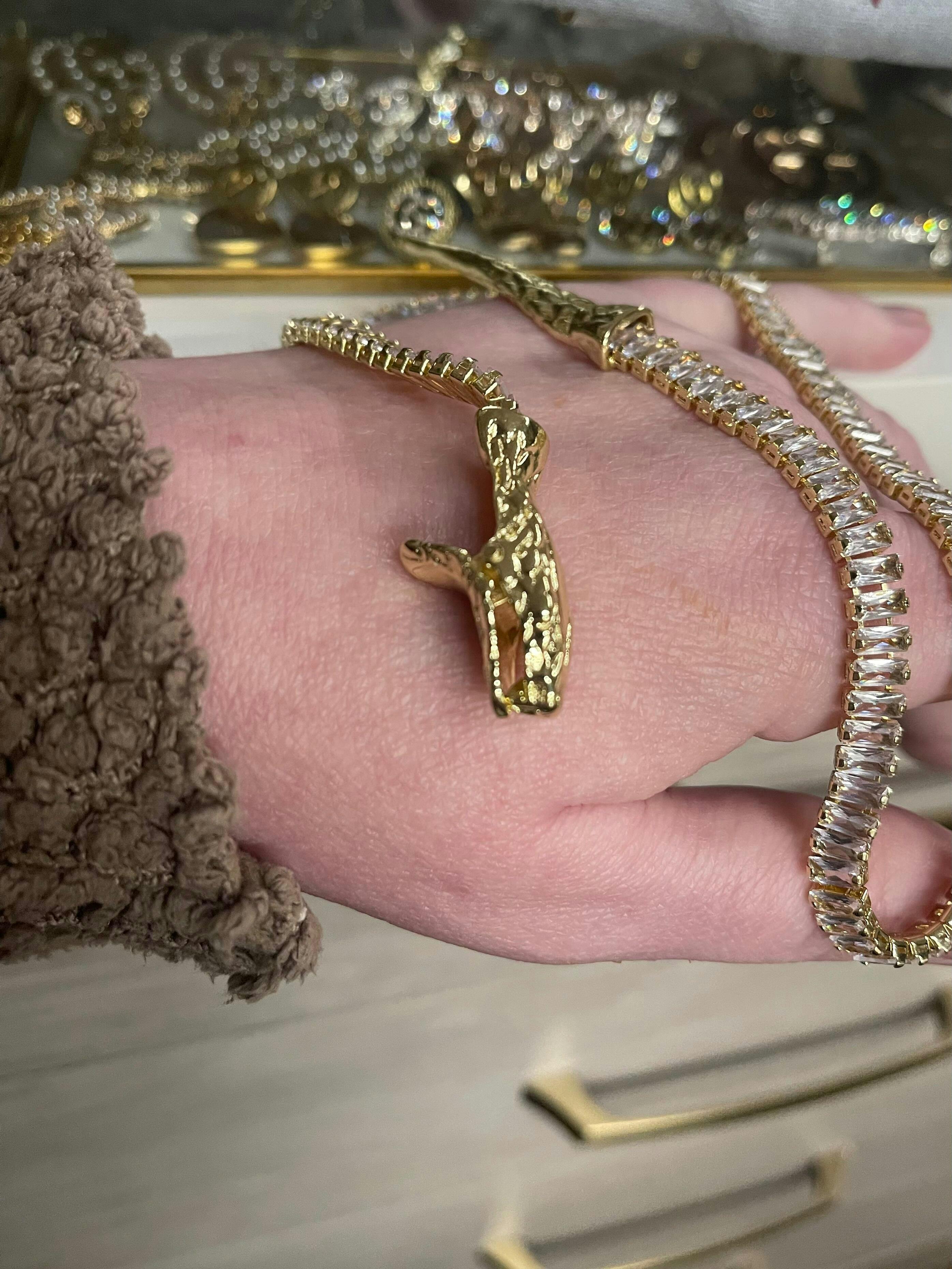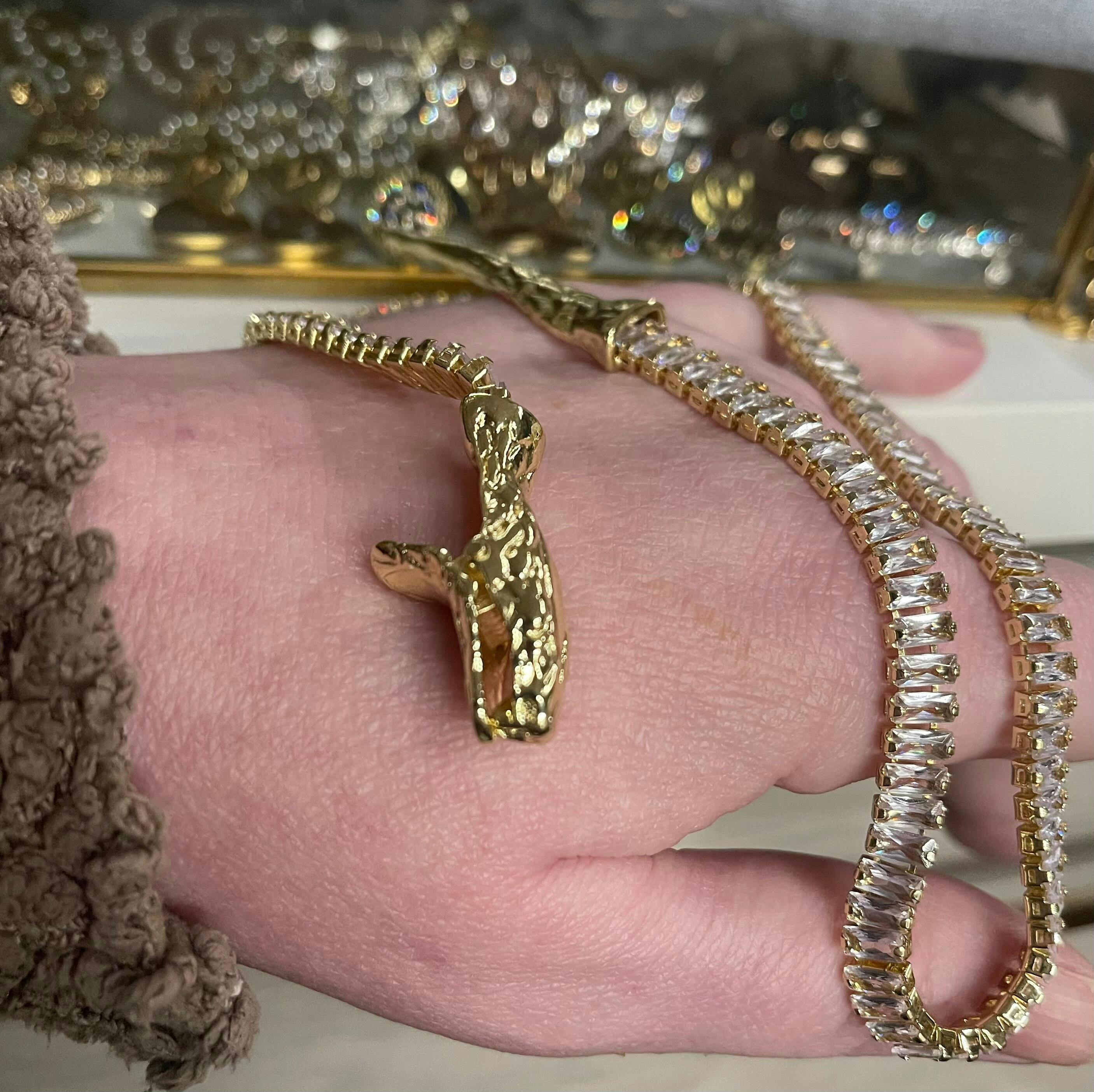 Elevate your elegance with the CZ Snake Chain Necklace, a sophisticated accessory designed for timeless appeal. Its sleek snake chain design gracefully contours the neck, offering a smooth and polished finish that catches light beautifully. Embedded with sparkling cubic zirconia stones, this necklace adds a refined shimmer without overwhelming your look. Perfect for both everyday wear and special occasions, it enhances any outfit with subtle luxury and understated glamour. Experience a blend of modern style and classic charm that complements your unique taste effortlessly.