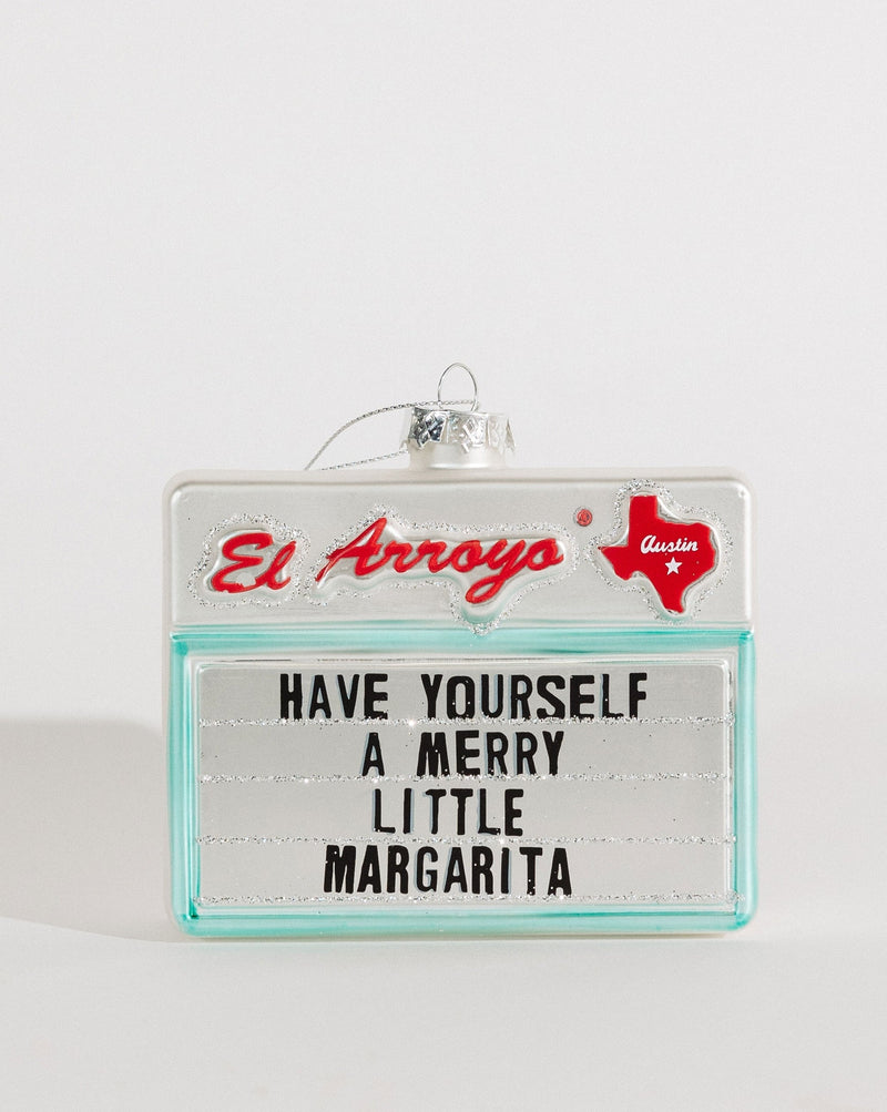 This one of a kind ornament is sure to be a festive hit! Made from mercury glass, this marvelous marquee adds a touch of humor to your tree that can be treasured for years to come.