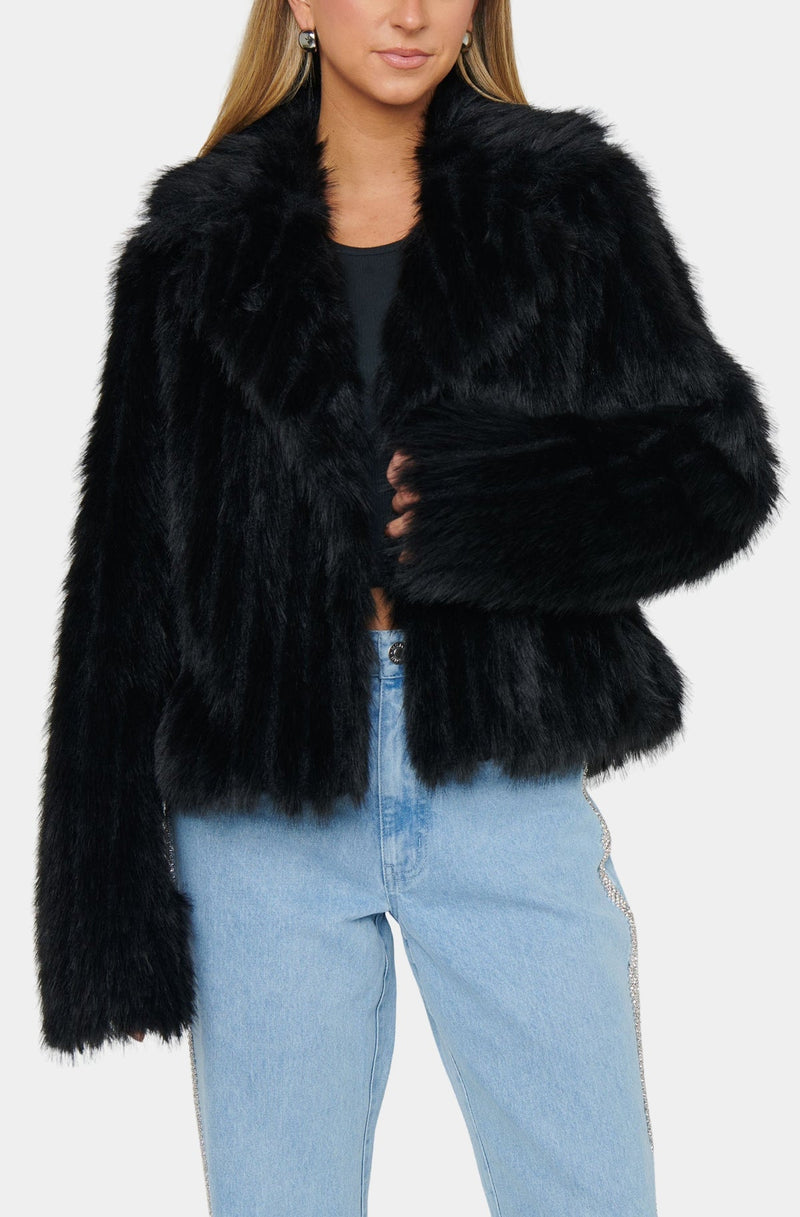 Introducing the Salt Lake City Cropped Jacket, a chic addition to any wardrobe. Crafted from luxurious faux fur, this open-front design offers a modern twist on classic outerwear. Perfect for layering over your favorite outfits, this cropped jacket is a must-have for any wardrobe.
