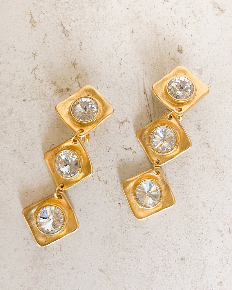 Discover the allure of these Vintage Geometric Golden Drop Earrings, where bold architectural lines meet warm metallic elegance. Featuring striking geometric shapes suspended from delicate hooks, these earrings command attention while maintaining sophisticated restraint. The golden finish catches light beautifully, creating subtle movement and dimension as you wear them throughout your day. Perfect for those who appreciate statement jewelry with substance, these drops work equally well with professional attire or evening wear. The vintage-inspired design bridges eras seamlessly, offering a distinctive look that sets you apart from conventional accessories. Whether you're seeking to refresh your everyday rotation or add a conversation-starting piece to your collection, these earrings deliver both visual impact and timeless appeal that transcends seasonal trends.