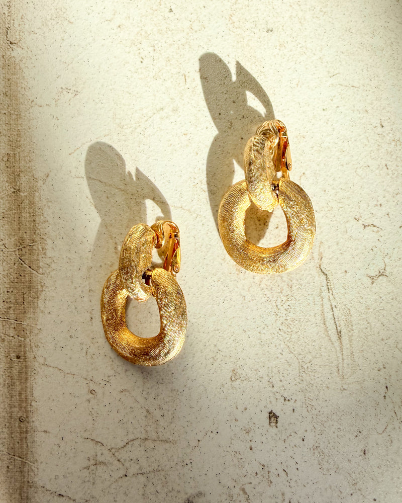Add movement and warmth to your look with these vintage gold dangle clip-on earrings that capture timeless allure. The flowing design catches light beautifully, creating an elegant frame for your face without requiring piercings. Perfect for those seeking versatile, no-commitment style that transitions seamlessly from everyday wear to evening occasions.