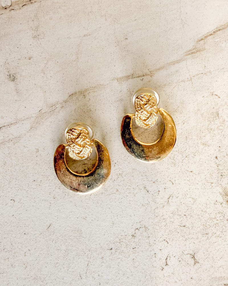 Make a statement with these striking vintage gold plated door-knocker earrings—a timeless accessory that channels retro glamour with contemporary edge. Crafted with lustrous gold plating, each pair features the iconic door-knocker silhouette that defined '80s and '90s luxury fashion. The substantial yet lightweight design ensures all-day comfort, while the bold geometric form commands attention without overwhelming delicate features. Perfect for elevating everyday looks or anchoring a sophisticated evening ensemble, these earrings bridge nostalgia and modern style. Whether you're drawn to vintage-inspired pieces or seeking a conversation-starting accessory, these door-knockers deliver undeniable presence and polish to any wardrobe.