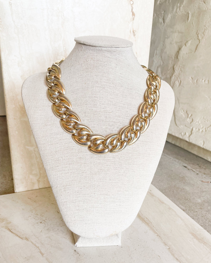 Make a refined statement with this Vintage Gold Tone Collar Necklace, a versatile piece that bridges classic elegance and contemporary style. At 16 1/2 inches, the collar length sits perfectly against your skin, creating a flattering frame that draws attention to your face and shoulders. The generous 3/4-inch width delivers presence without overwhelming your silhouette, striking that coveted balance between bold and wearable. The warm gold tone evokes vintage charm while remaining effortlessly modern, making it a go-to choice for layering with delicate pieces or commanding attention as a standalone accent. From office polish to evening sophistication, this necklace adapts to your lifestyle while maintaining the premium quality and timeless appeal that elevates any wardrobe.