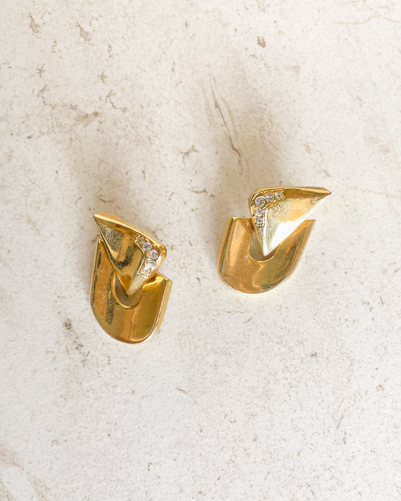 Vintage Gold tone with Clear Rhinestones Dangle Earrings