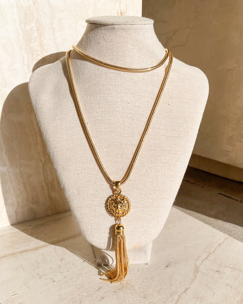 Vintage Lion Medallion w/ Tassel Gold Tone Necklace