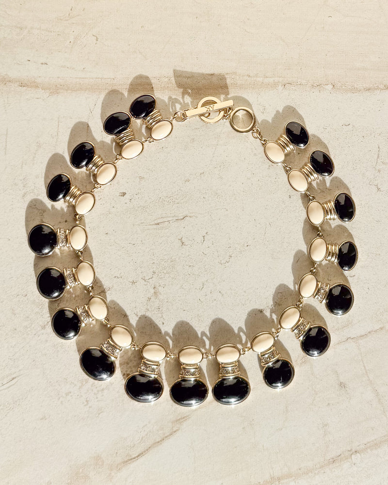Vintage SIgned black and off-white enamel oval necklace