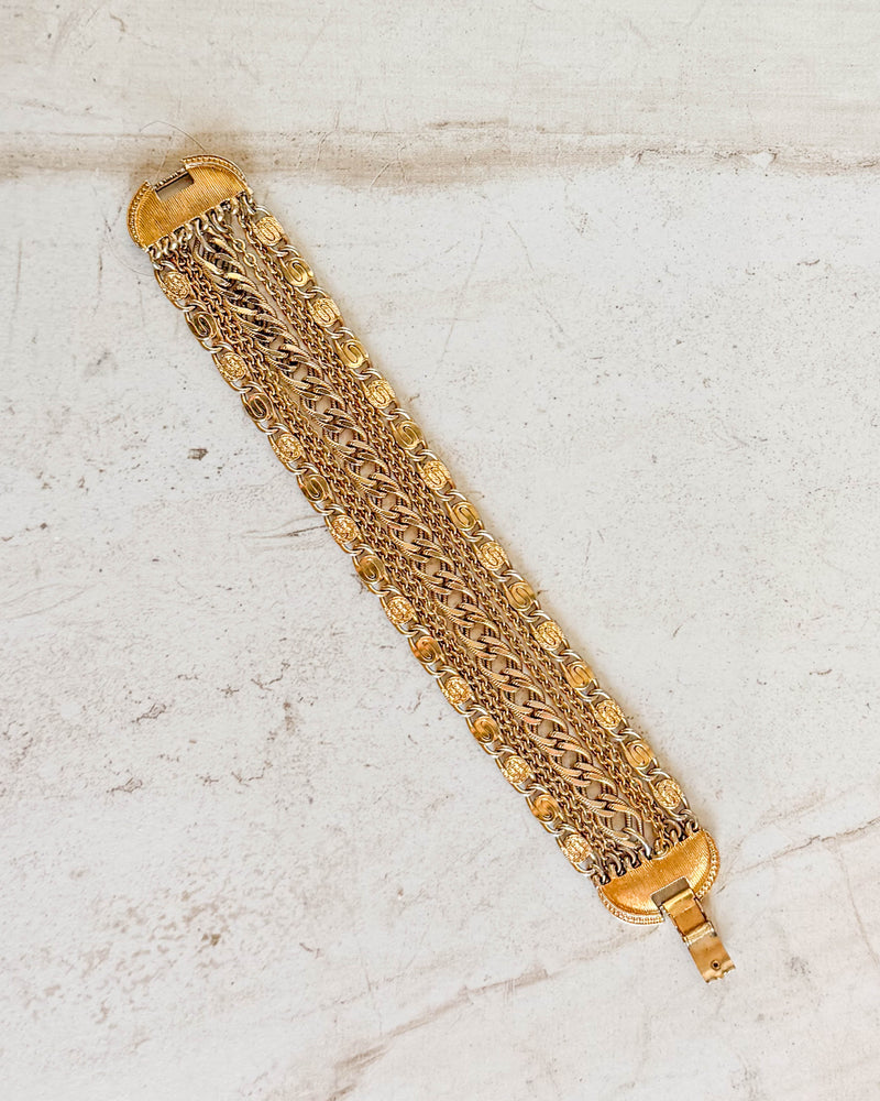 Vintage Signed Gold Tone Five Chain Box Clasp Bracelet