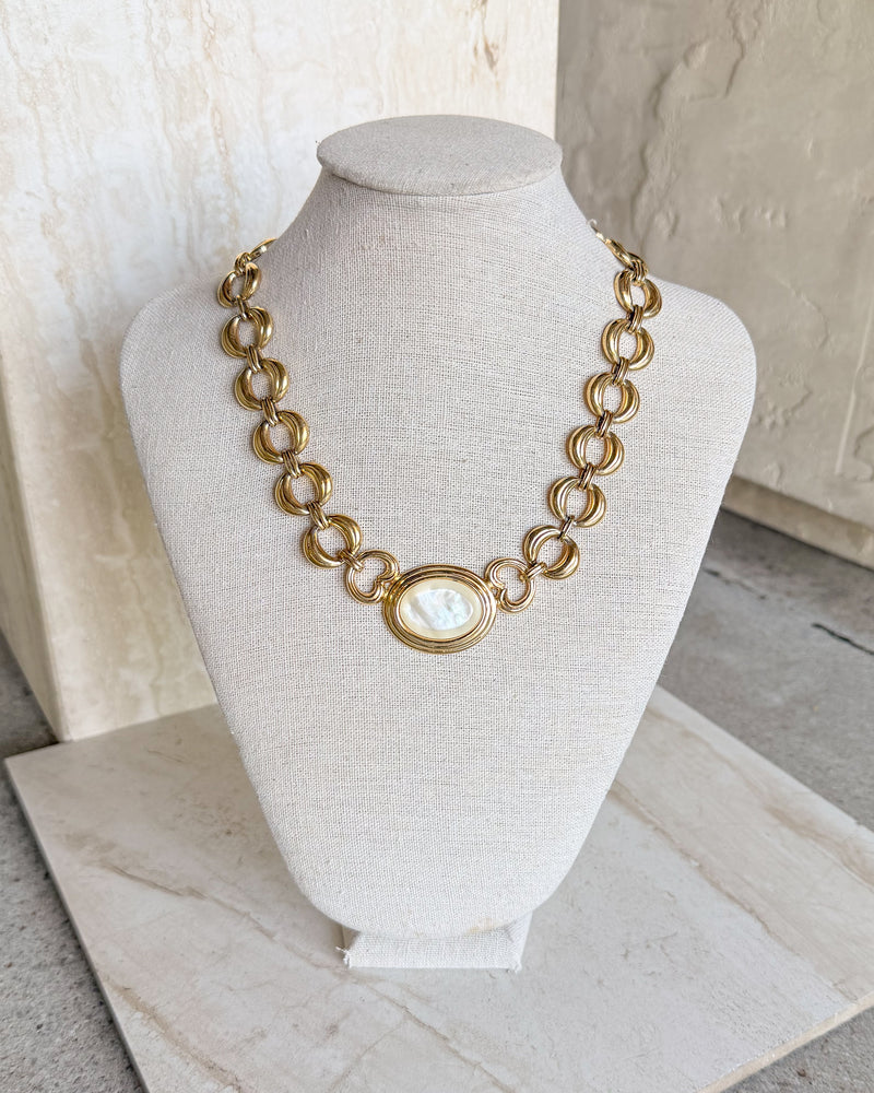 Vintage Signed Gold Tone Pearl Pendant Necklace