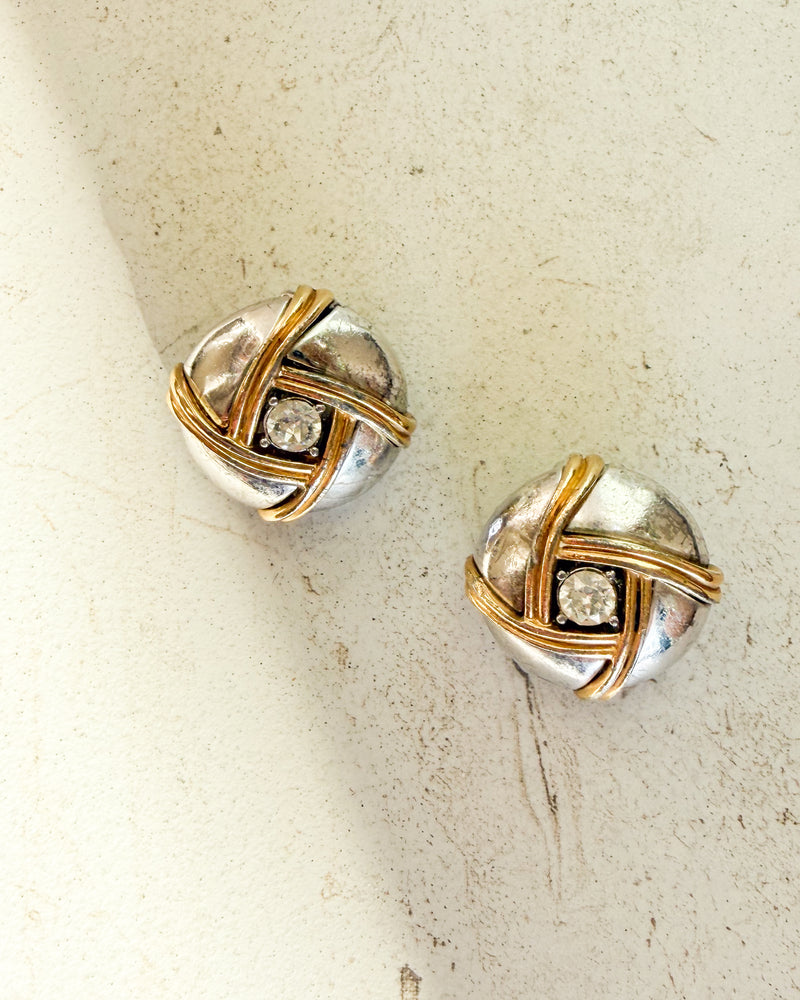 Vintage Signed Two Tone Chunky Clip- On Earrings
