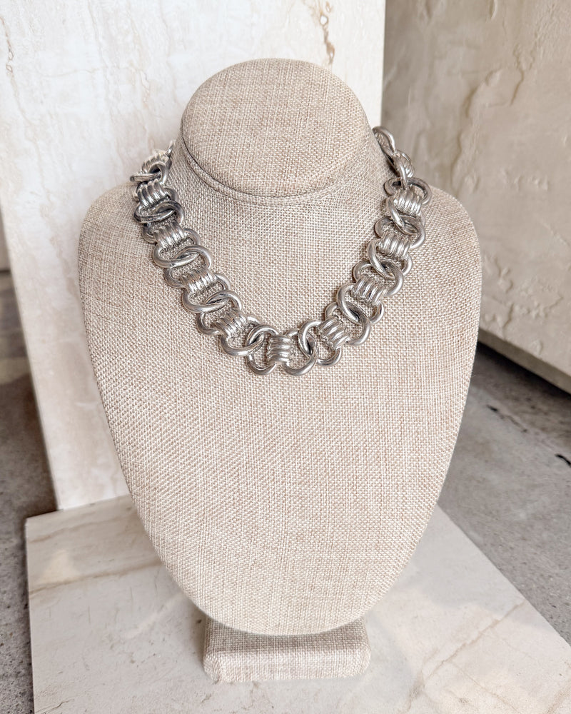 Elevate your jewelry collection with this exceptional vintage signed silver thick link necklace, a distinguished piece that marries bold design with authenticated craftsmanship. The maker's signature confirms its heritage and collectible value, while the substantial chunky links showcase meticulous metalwork and architectural precision. This necklace commands presence at the neckline, delivering the perfect balance between statement-making impact and wearable sophistication. The rich silver finish complements any complexion and coordinates seamlessly across your wardrobe—from minimalist everyday styling to glamorous evening occasions. Built to last generations, this vintage treasure represents an investment in quality and authenticity that transcends fleeting trends. Own a piece of jewelry history with undeniable character and enduring appeal.
