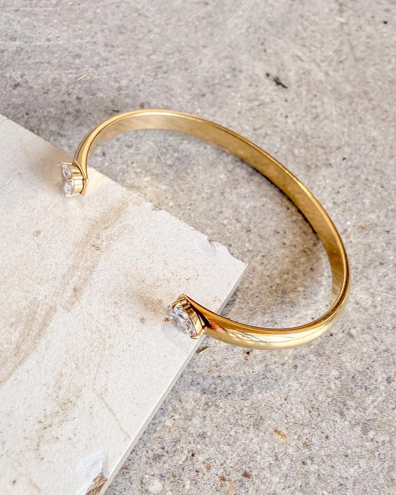 Discover timeless elegance with the Vintage Tearlight Cuff Bracelet, a statement piece that seamlessly transitions from day to night. This sophisticated design showcases two stunning pear-cut crystals that catch the light beautifully, creating an eye-catching focal point on your wrist. The cuff silhouette offers a modern take on vintage aesthetics, making it the perfect accessory for elevating both casual and formal ensembles. Whether you're dressing up for an evening event or adding polish to everyday wear, this versatile bracelet delivers effortless refinement. Choose from three luxurious finishes—yellow gold, rose gold, or white gold—to match your personal style and existing jewelry collection. An investment piece that complements any wardrobe and occasion.