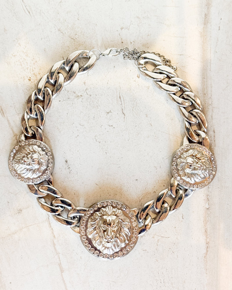 Make a bold statement with this striking Vintage Three Head Lion Medallion Chain Necklace. Featuring an intricately detailed lion head medallion suspended from a refined chain, this piece channels timeless luxury and commanding presence. The sculptural design captures the majesty of three lion profiles in exquisite detail, making it an ideal layering piece or standalone focal point for elevated everyday wear. Perfect for those who appreciate heritage-inspired jewelry with narrative depth, this necklace pairs effortlessly with both tailored blazers and slip dresses, adding an unexpected edge to your wardrobe. A conversation starter that celebrates craftsmanship and distinctive style.